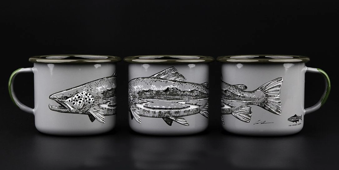 What better way to enjoy your morning coffee or evening beverage of choice than in handmade enamelware showing your love of fishing? Clearly, there isn’t one.