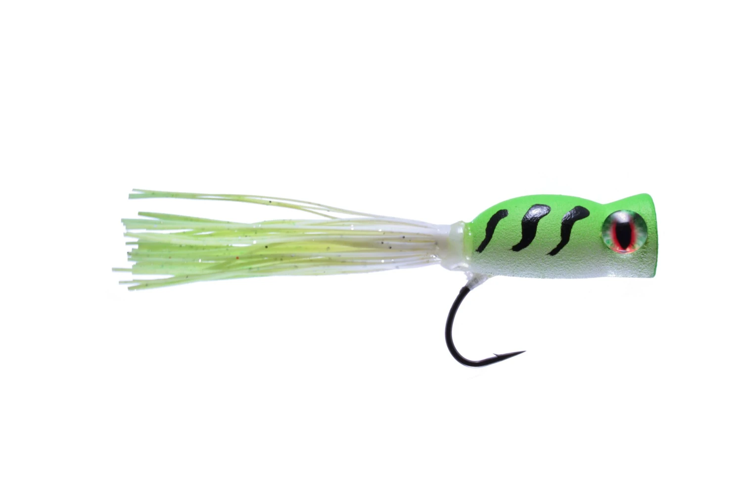 Available in two fantastic colors, the Lu’au Frog is a lethal top-water bass fly. This pattern produces an enticing audible pop, has silicone legs to better mimic life-like movement, and incorporates a thin, clear tube to prevent the silicone legs from fouling. Meant to be fished along weed edges, or tossed into the heart of pads and shallow weed flats, this frog will entice that predatory bass you’re after.Â