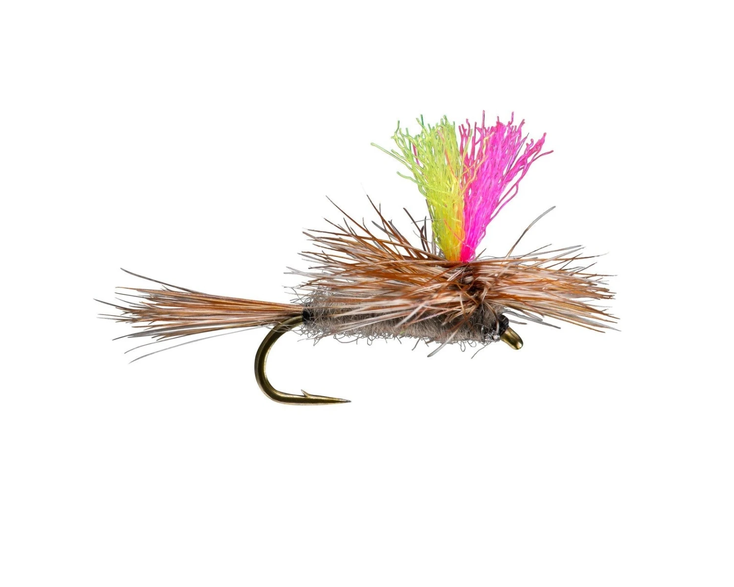 Sometimes when fishing a Mayfly hatch the light and/or background is less than ideal to see normal colored dry flies. This version of a Mayfly adult uses brighter colored wing posts that help anglers see their fly in such conditions, or make it easy to pick out their fly from the naturals around it.