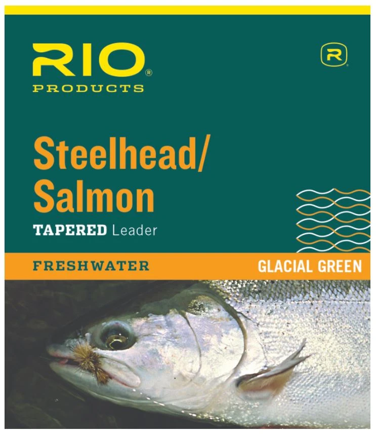 RIO’S Steelhead/Salmon Leaders are designed and built to match the needs of the steelhead and salmon fly fisher. The leaders are made of a medium stiff nylon and have a powerful taper design that easily turns over larger flies, and cope with tough winds. The copolymer material is incredibly tough and highly abrasion resistant. For 2016 RIO has changed this material to a glacial green color to better blend into the water.