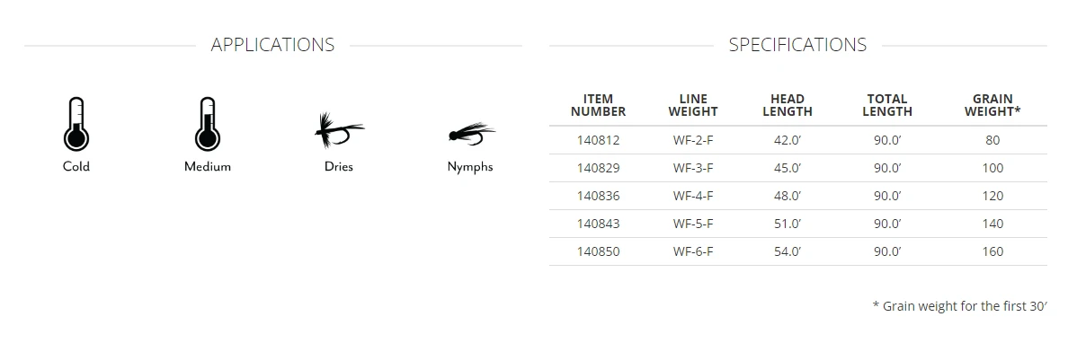 - Floating Texture on the tip section for the ultimate in flotation; it simply keeps dry flies floating longer